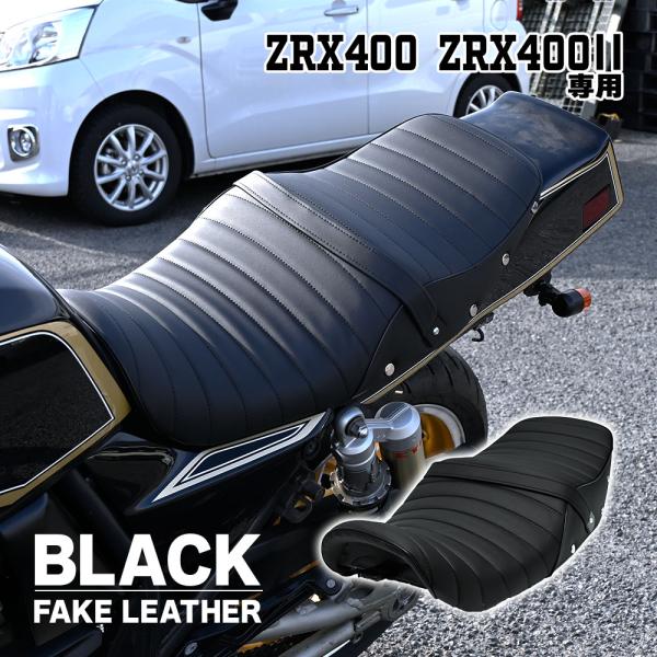 ZRX400 タックロール シート 黒 ZR400E 旧車 カスタム オリジナル 鋲付き あんこ抜き ローダウン アンコ抜き ブラック タックロールシート フェイク