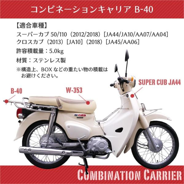 ホンダ スーパーカブ JA10 JA44 AA04 AA09 AA07 JA45 コンビネーションキャリア B-40 アウトスタンディング ステンレス