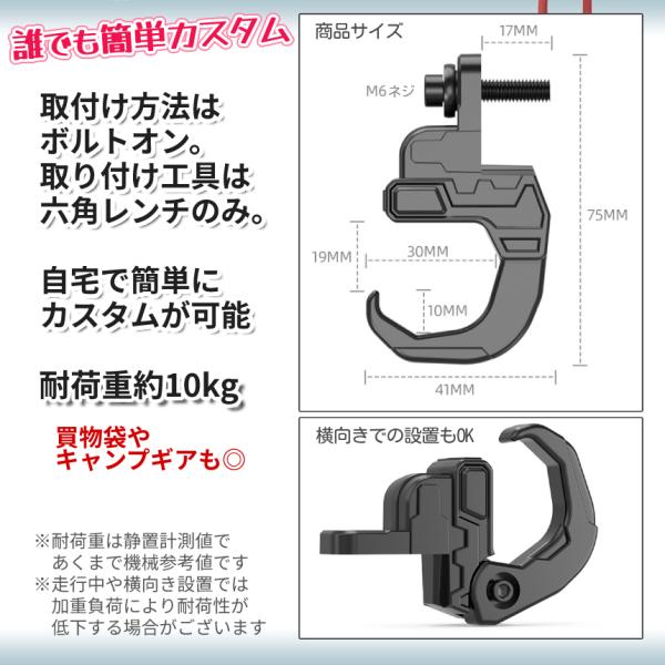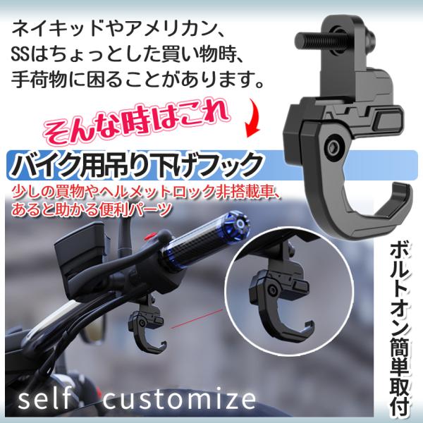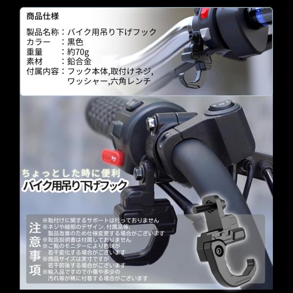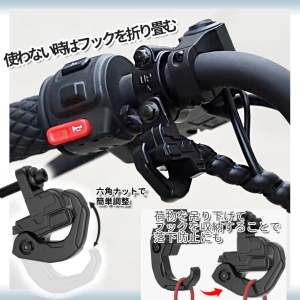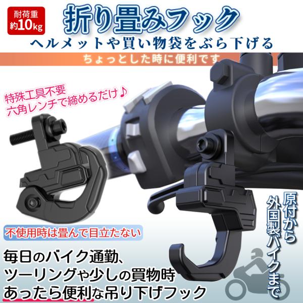 バイク ハンドル フック コンビニフック 吊り下げ 折り畳み 荷物 カバン 買い物 袋 掛け ブラック ヘルメット 汎用 原付 オートバイ ハング 取付 簡単 BIKEFOOKS