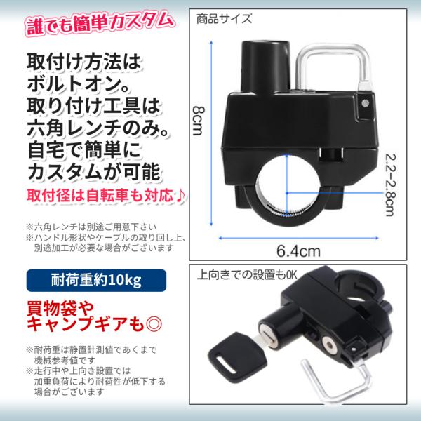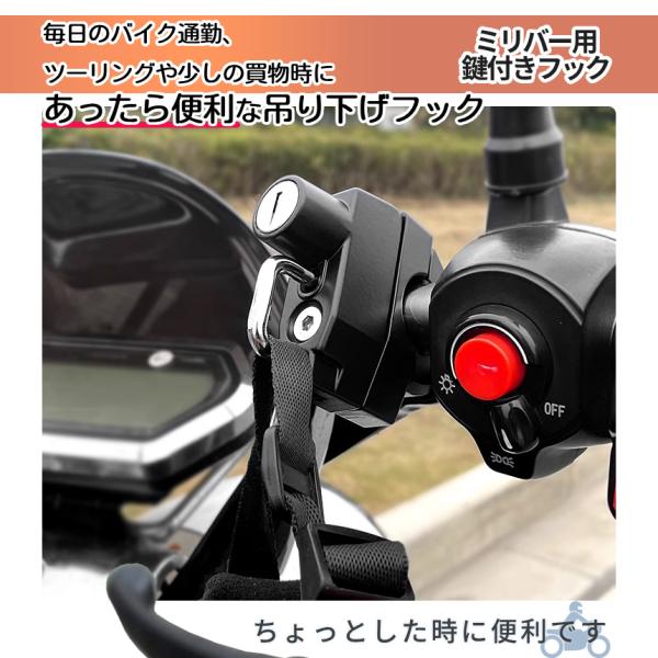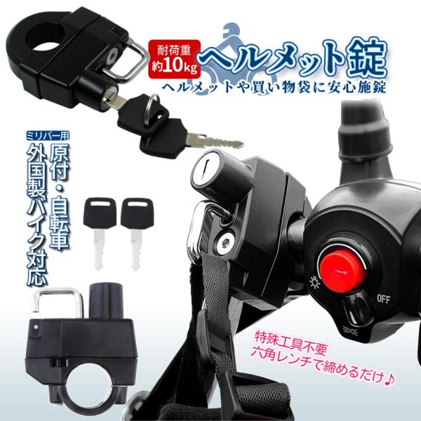 ヘルメットロック 自転車 ヘルメット ロック 盗難防止 ミリバー用 22-25mm 吊り下げ フック 荷物 ハンドル バー バイク 錠 鍵 カギ ロードバイク 防水 METTRON