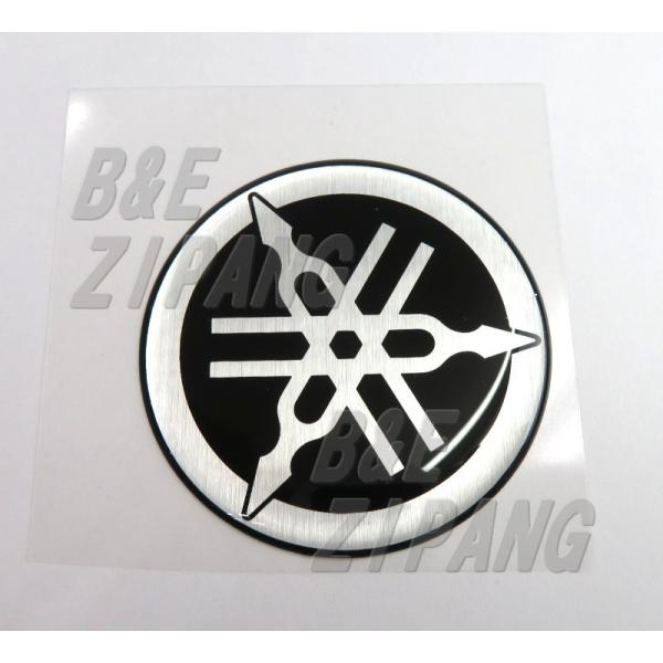 【ヤマハ純正】 YAMAHA 立体ロゴエンブレム バッジ 音叉マーク ステッカー 樹脂ドーム加工 シルバー/ブラック 直径55mm ST121