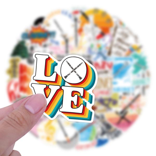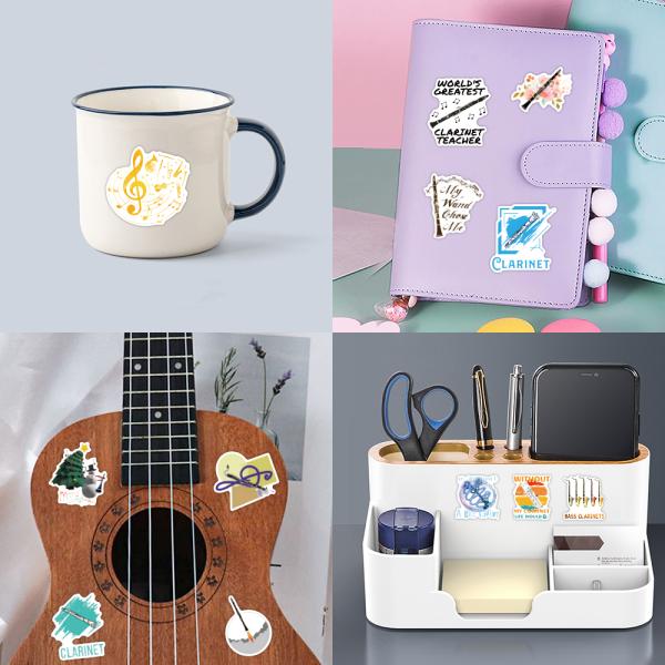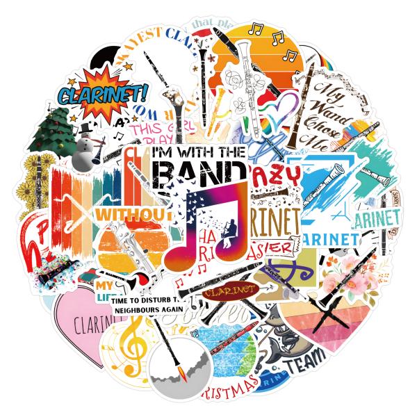 クラリネット CLARINET 木管楽器 管楽器 簧 リード 楽器 楽譜 五線譜 音楽教室 習い事 音楽 シール ステッカー50枚HYB