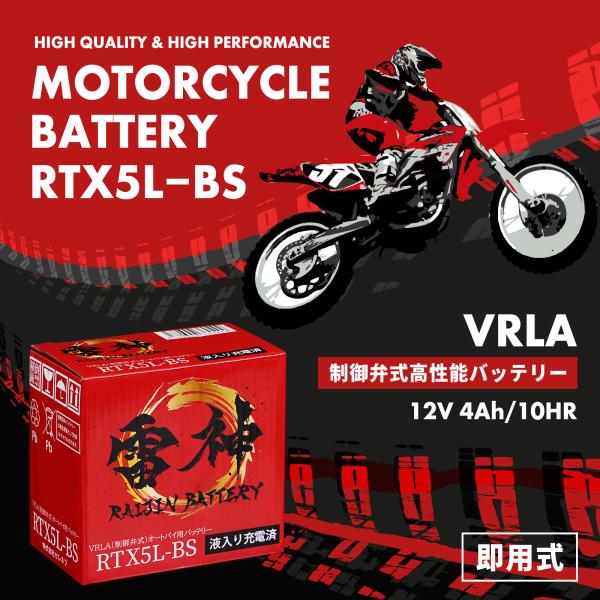バイク バッテリー YTX5L-BS 互換 RTX5L-BS 雷神バッテリー 液入り充電済 高性能 制御弁式 オートバイ 密閉型