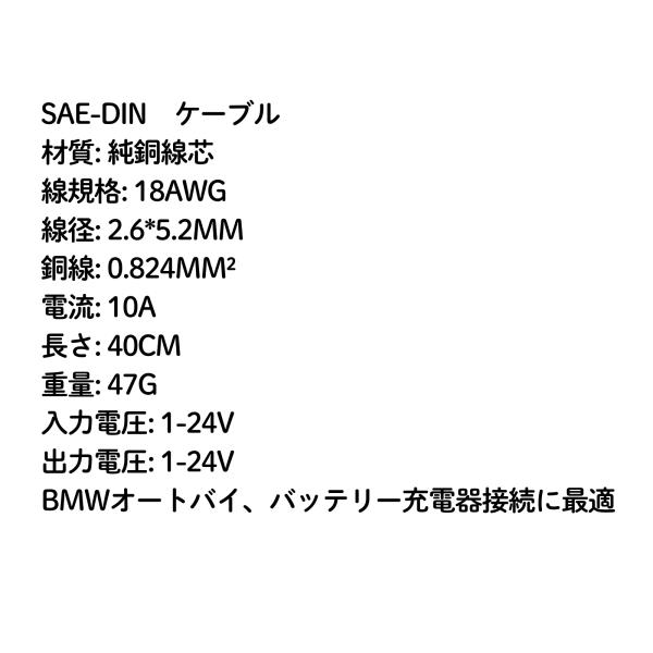 DIN SAE バッテリー充電器接続 電源取り出しケーブル SAEプラグ反転アダプタ付属 40cm 18AWG BMWオートバイに最適 Hella