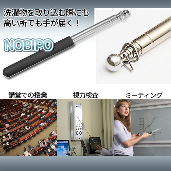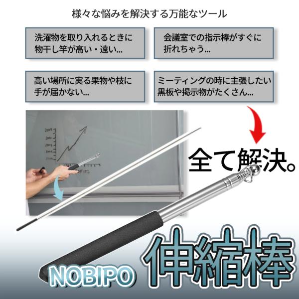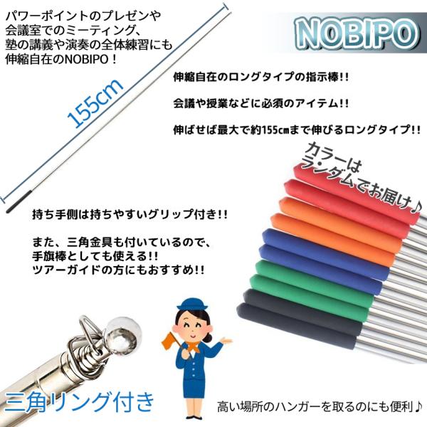指示棒 伸縮 ロング 155cm 伸縮棒 手旗棒 ポインター 棒 ポール 旗棒 三角金具 伸縮自在 滑り止め グリップ 指示 会議 授業 塾 研修 プレゼン ガイド NOBIPO