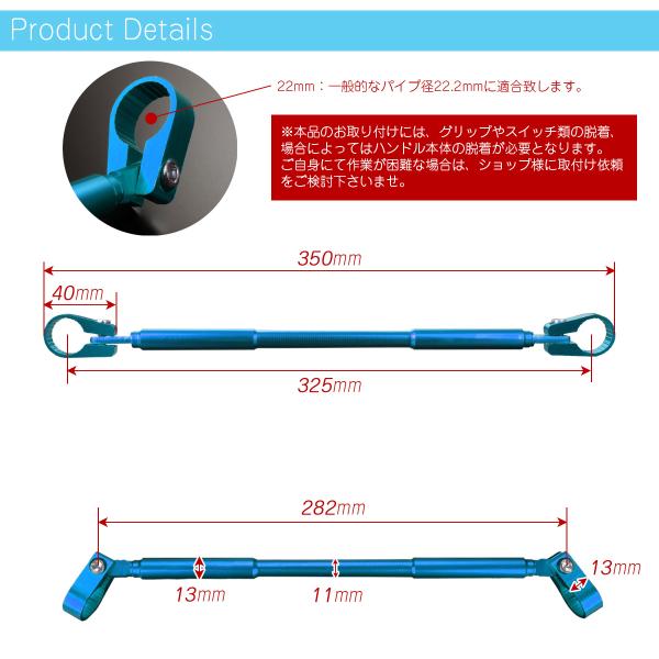 バイク ハンドルブレース ブレースバー アルミ 適合径22.2mm ロングタイプ 全長350mm ブルー S-311-BL