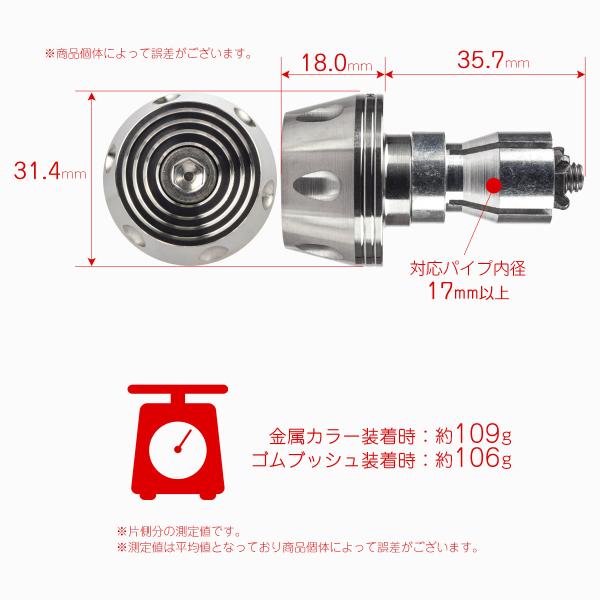 バイク用 バーエンド キャップ 適合ハンドルパイプ内径17mm ウエイト ステンレス 2個セット マットシルバー TH0430