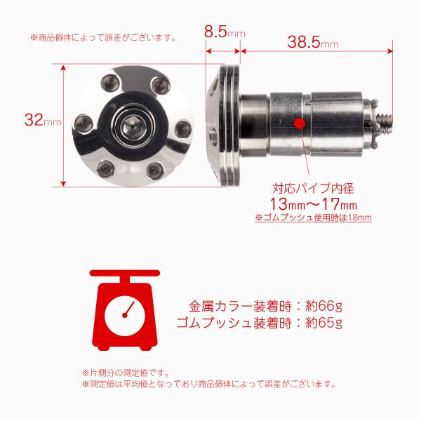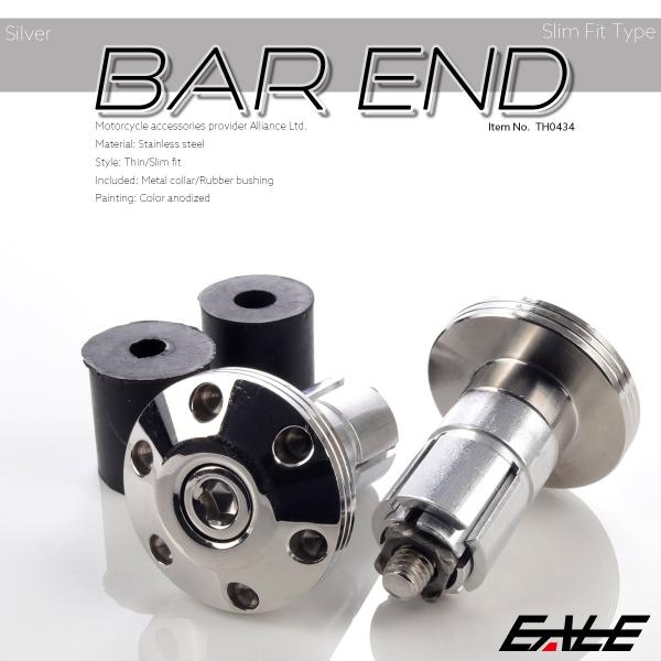 バイク用 バーエンド キャップ 適合ハンドルパイプ内径13-18mm シンホールヘッド ステンレス 薄型 シルバー TH0434