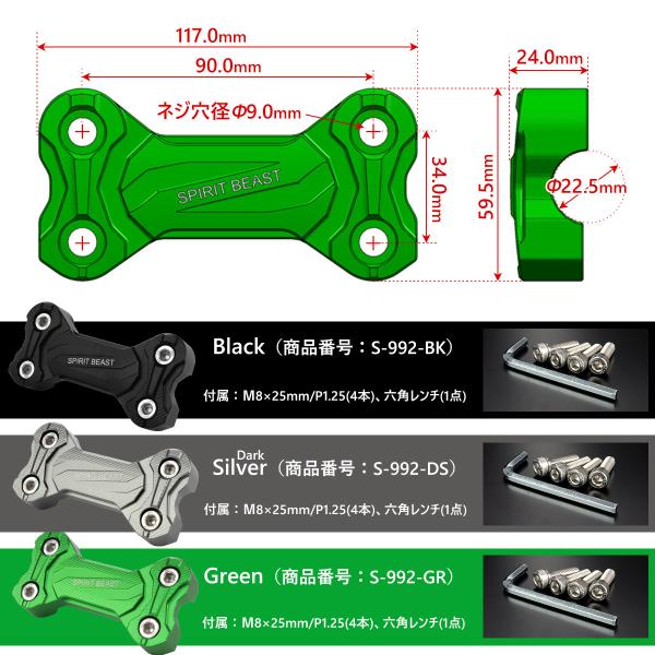 Z250 Z400 2019-2025年 バイク バーハンドル クランプカバー T6アルミ アルマイト カワサキ車 S-992