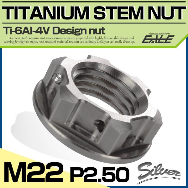 チタンナット M22 P2.5 ステムナット 六角ナット フランジ付 シルバー デザイン JA162