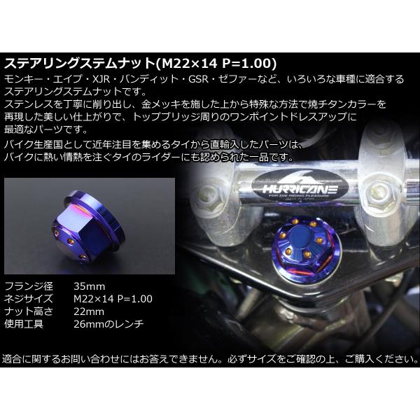 SUSステンレス ホールヘッド ステアリング ステムナット M22×14mm P=1.00 エイプ XJR 適合多数 焼チタンカラー TH0149
