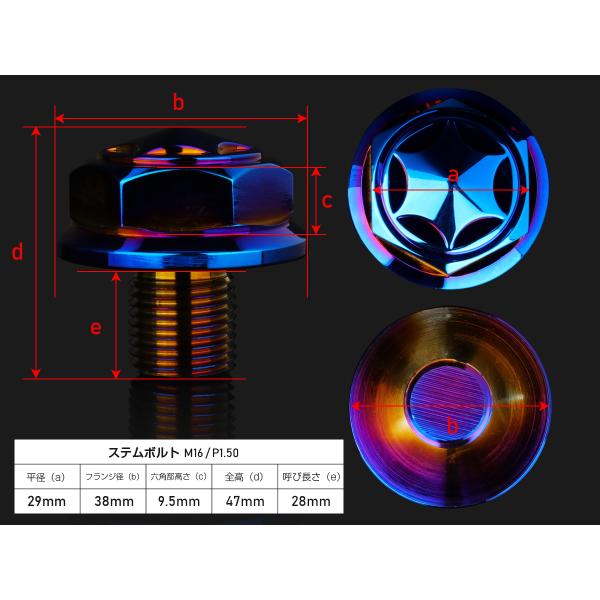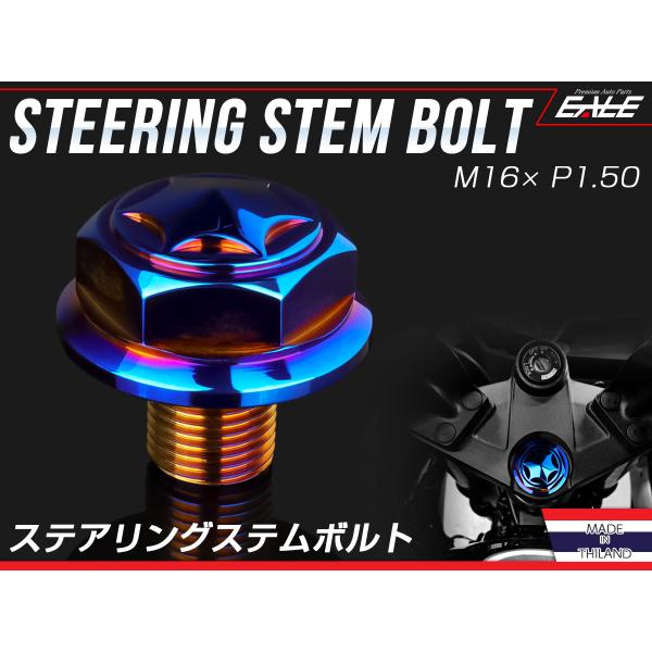 Ninja250 カワサキ ステアリング ステムボルト M16 P1.50 スターヘッド SUSステンレス 焼チタンカラー TH0161
