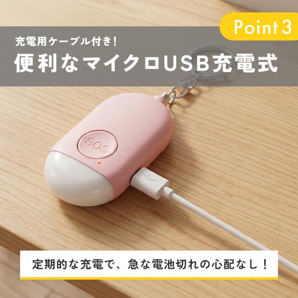 防犯ブザー 小学生 女性 家用 充電 家用 ランドセル 大音量 防水 USB 子供 子ども キッズ LED ライト 男の子 女の子 防犯 屋外 おしゃれ