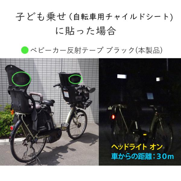 【2個セット】ベビーカー反射テープ ブラック/黒 28cm 6枚入 | ベビーカー バギー 子供乗せ 自転車 ヘルメット バイク