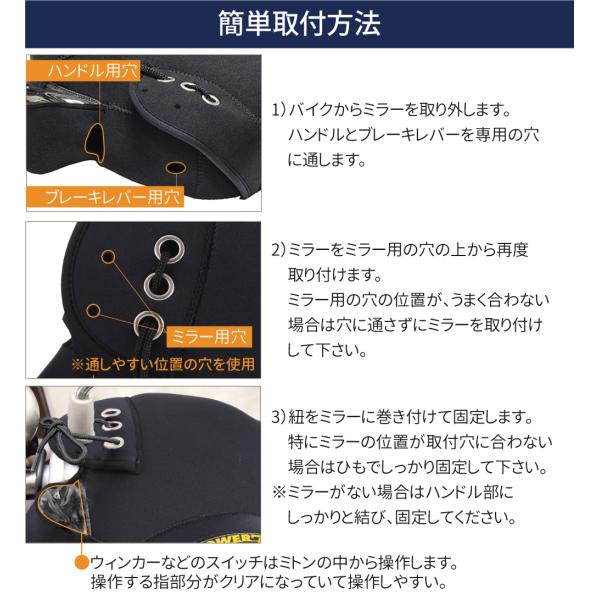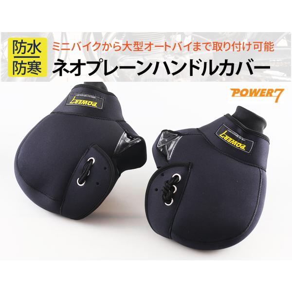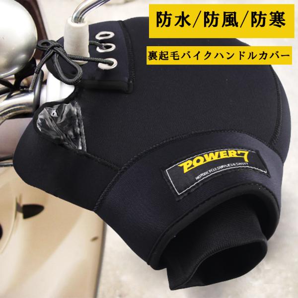 【ネックウォーマーおまけ付き】 バイク ハンドルカバー 防水 防寒 防風 裏起毛 POWER7 ネオプレーンゴム 汎用 スクーター ミニバイク 対応 ミトンタイプ 暖かい