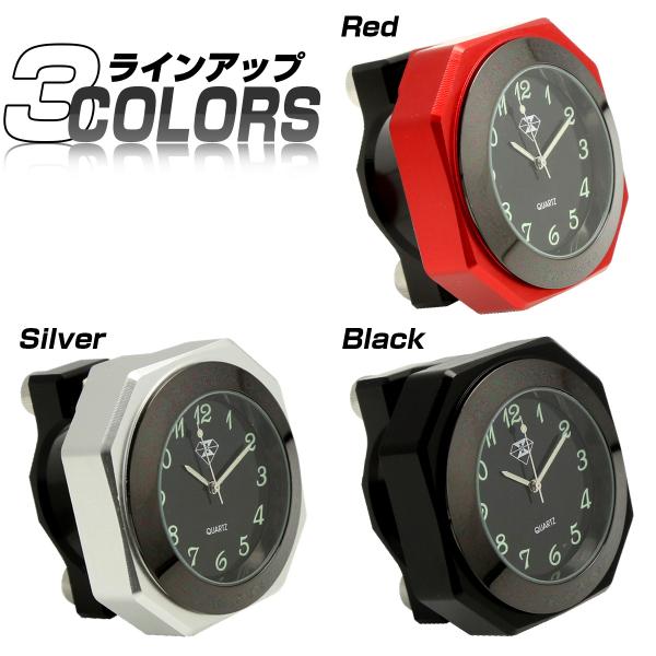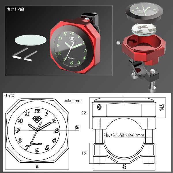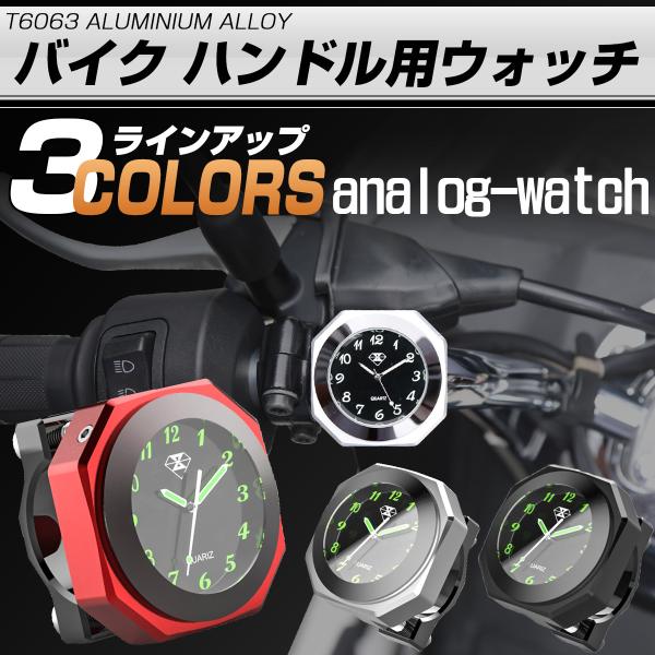 アナログ時計 ハンドル取付用ウォッチ IPX7防水 夜光 文字盤 アルミ製 バイク用 S-766