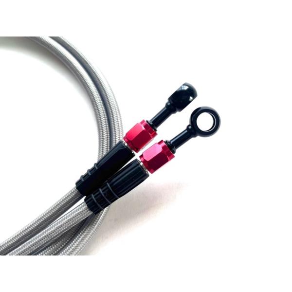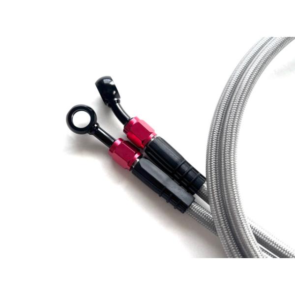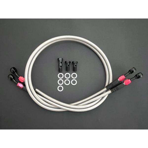 汎用 メッシュ ブレーキホース ダブルディスク用 赤黒 長さ選択可能