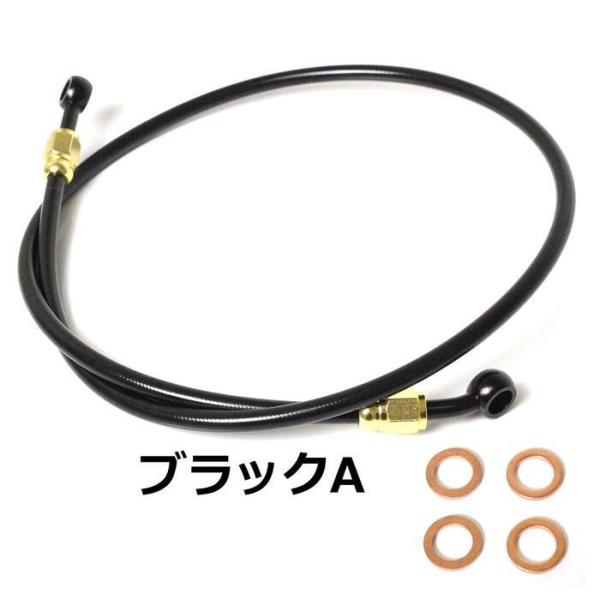 ステンメッシュ ブレーキホース クラッチホース 100cm/1000mm 銅ワッシャー付 角度ストレート&20°油圧 シルバーA/B ブラックA/B