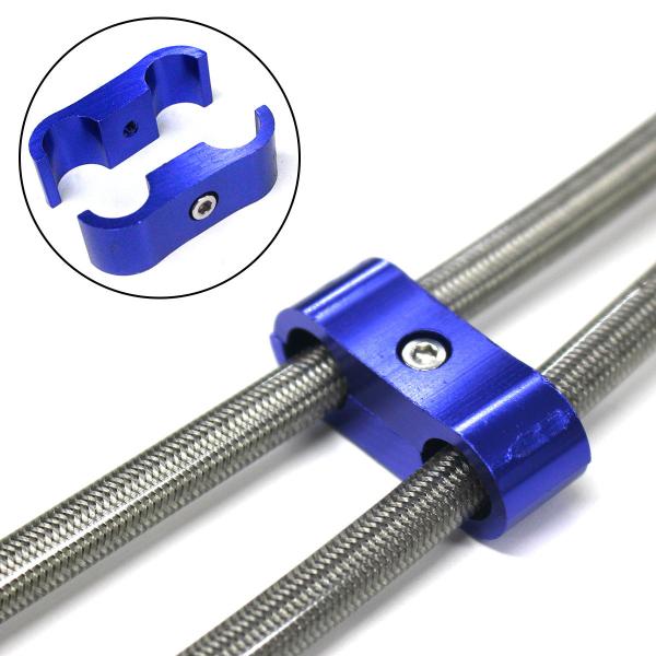 『3個set AN4 青 赤 黒』アルミ製 ホースセパレーター オイル ブレーキ フューエル 燃料 メッシュ ホース ホースクランプ ブルー レッド ブラック