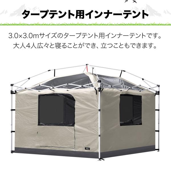 ヤフー1位 タープテント 専用インナーテント 3m フルクローズ 4面 吊り下げ式 グランドシート一体型 虫よけ 日除け 防災 避難用 メッシュ 横幕 300cm 送料無料