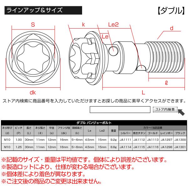 64チタン製 バンジョーボルト ブレーキライン M10 P1.25 トルクス穴 ダブル デザインボルト ゴールド JA1116