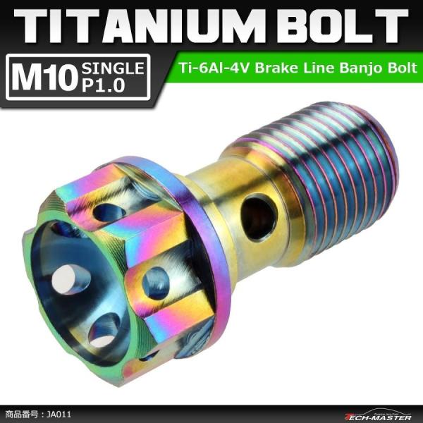 64チタンボルト バンジョーボルト M10 P1.0 シングル ブレーキライン 1本ホース用 焼きチタンカラー ライトカラー 1個 JA011