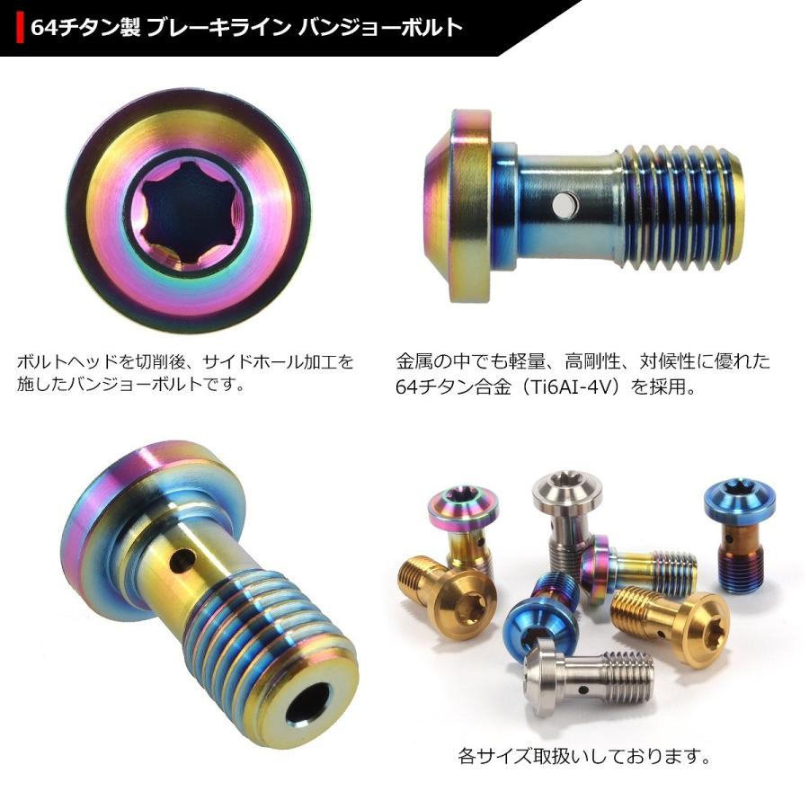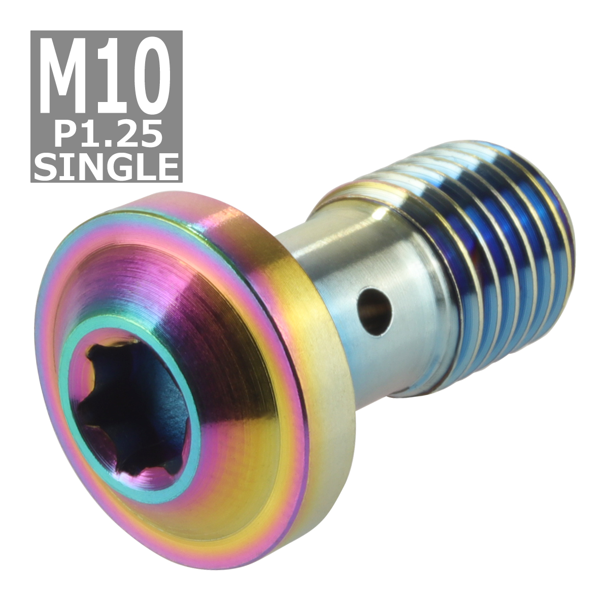 64チタンボルト バンジョーボルト M10 P1.25 シングル ブレーキライン トルクスヘッド 焼きチタンカラー レインボーカラー 1個 JA269