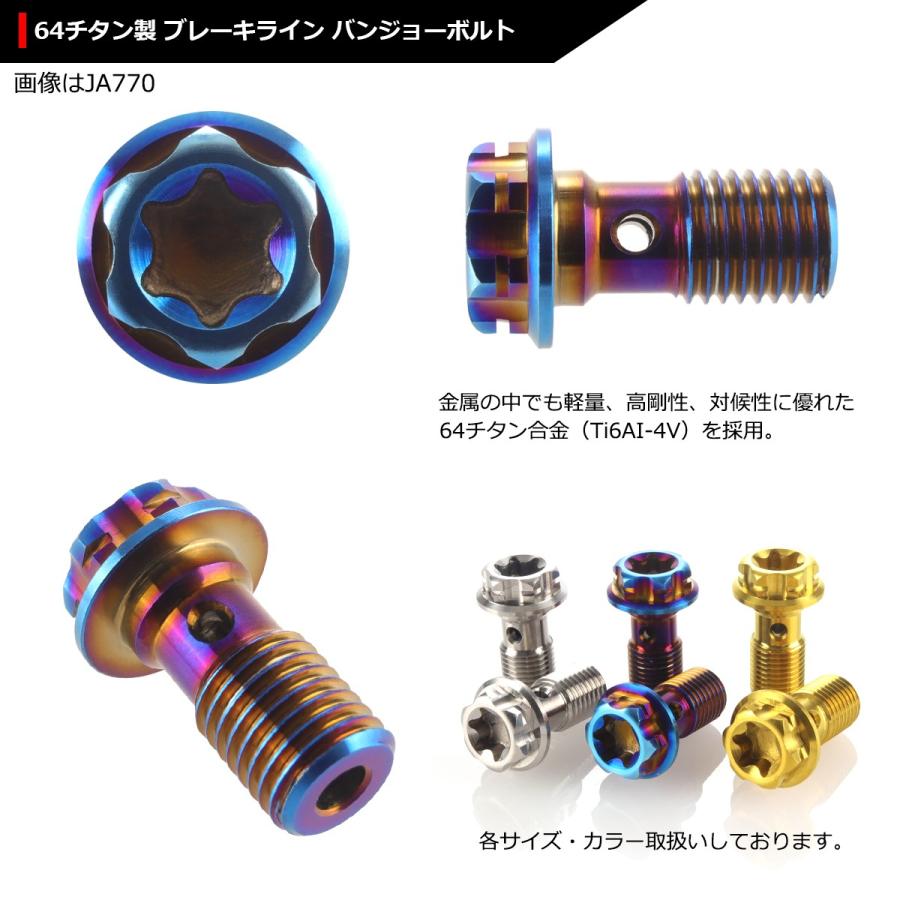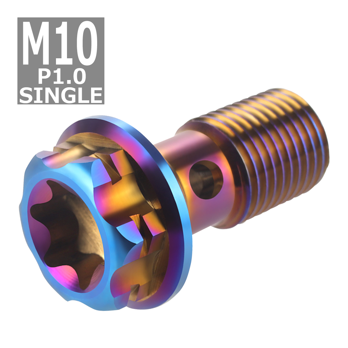 64チタンボルト バンジョーボルト M10 P1.0 シングル ブレーキライン 1本ホース用 トルクス穴付き 焼きチタンカラー ダークカラー 1個 JA770