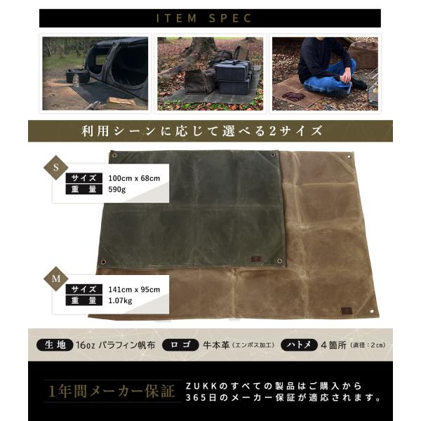 ZUKK 公式 グランドシート M キャンプ ソロ 帆布 キャンバス パラフィン 本革 厚手 撥水 防水 16oz 高耐久 テントシート マルチシート レジャーシート