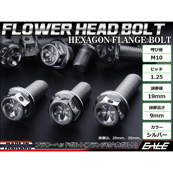 M10×35mm フラワー ヘッド ボルト ステンレス 削り出し フランジ付六角ボルト フレームやエンジン周りに シルバー TB0466