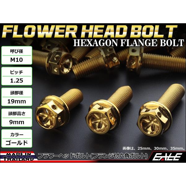 M10×40mm フラワー ヘッド ボルト ステンレス 削り出し フランジ付六角ボルト フレームやエンジン周りに ゴールド TB0526