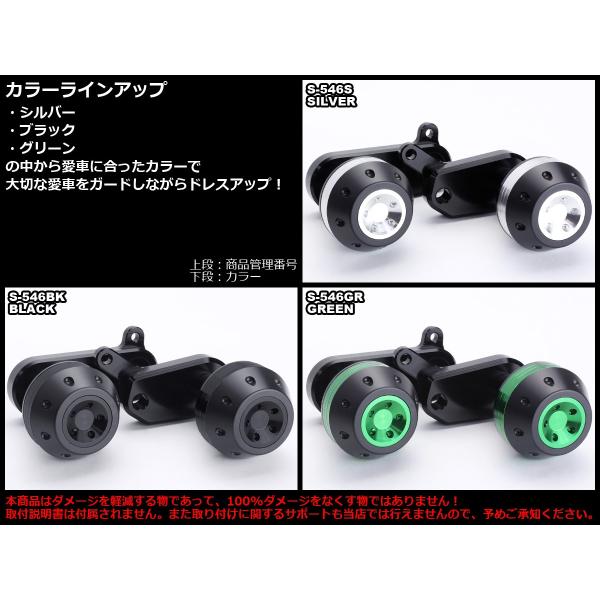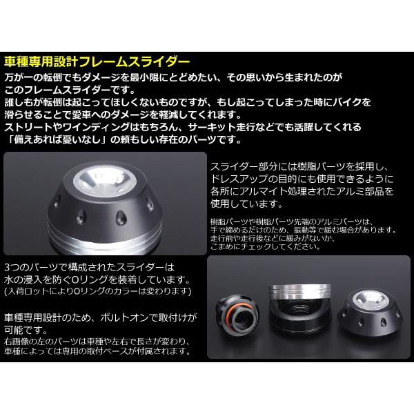 ZX-6R ZX600R フレームスライダー 09-12年式 専用設計 ボルトオン アルミ+樹脂 カワサキ車用 S-546