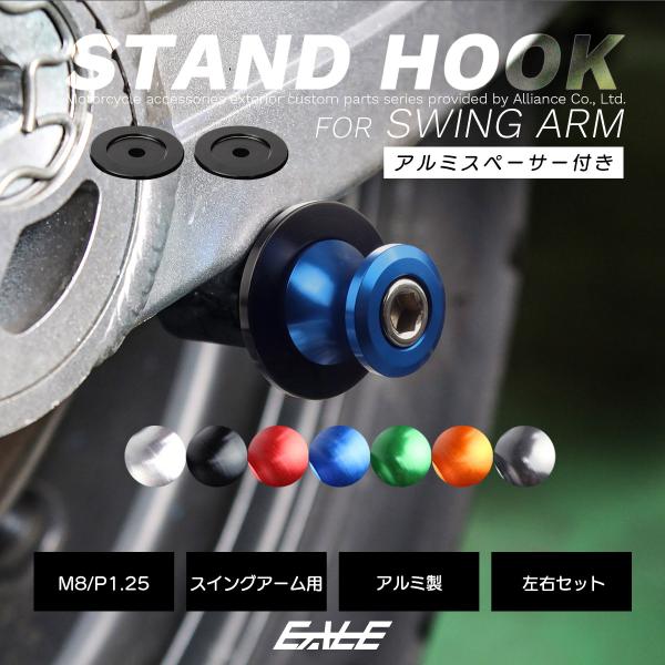 バイク スタンドフック スイングアーム用 M8 リア用 アルミ製 スペーサー付き 左右セット S-522