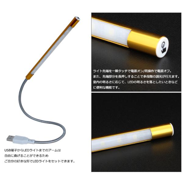 USB LED ライト 照明 読書灯 デスク 卓上 パソコン 曲がる 小型 車 調光 スイッチ付き