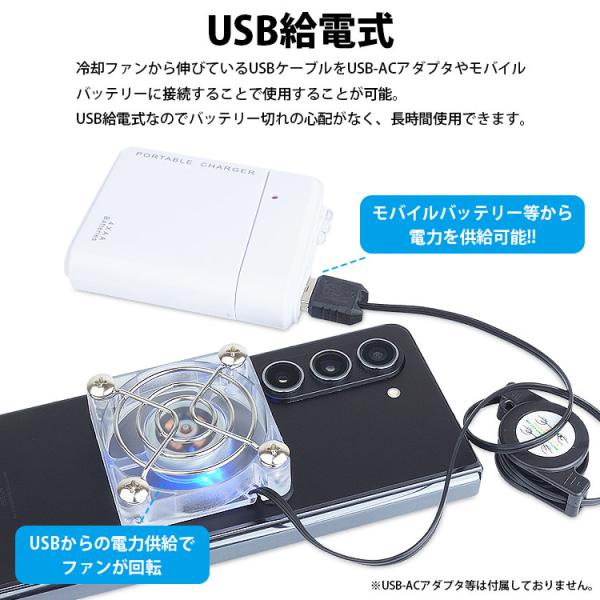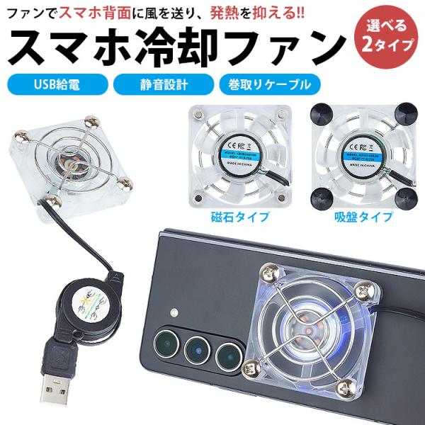 スマホ 冷却ファン USB給電 静音 磁石 吸盤 巻取り式 USBケーブル 小型 軽量 コンパクト 持ち運び 放熱 冷却グッズ ゲーム 熱暴走 熱対策 スマートフォン