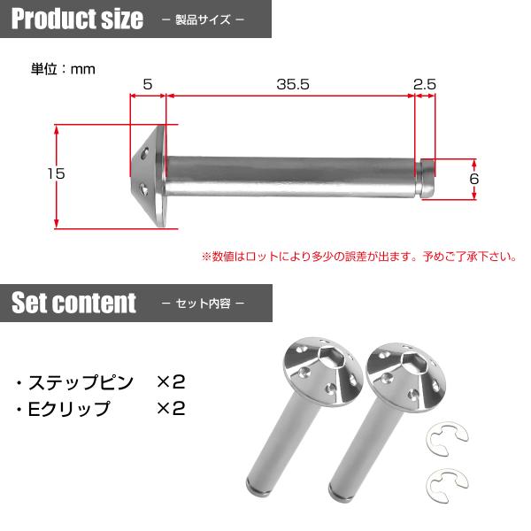 バイク ステップピン シルバー 2本セット 割りピン付 Φ6×35mm テーパーヘッド ステンレス TH0470