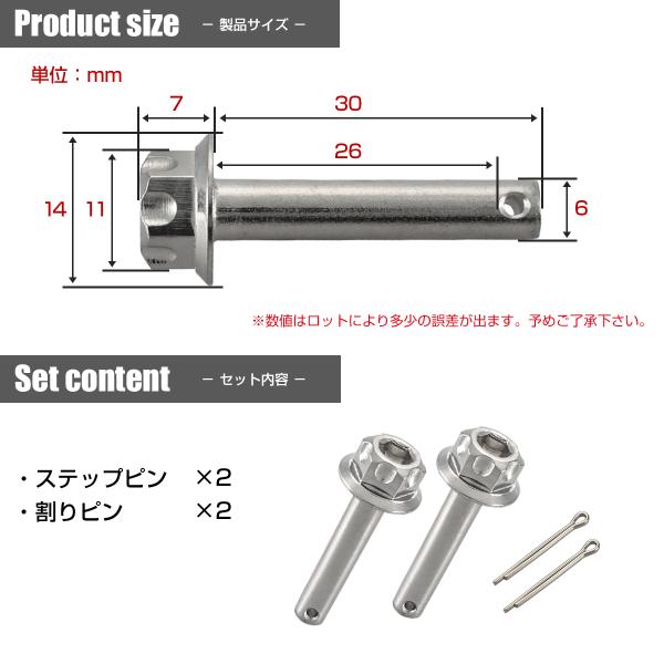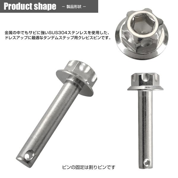バイク ステップピン シルバーカラー 2本セット 割りピン付 Φ6×30mm ヘキサゴンヘッド ステンレス TH0766