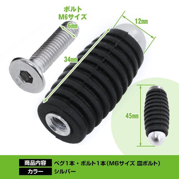 シルバー ゴム付きペグ ブレーキ シフト共用 M6 シフトペグ ブレーキペグ ステップ補修用 バックステップ 修理用 ゴム付き オートバイ