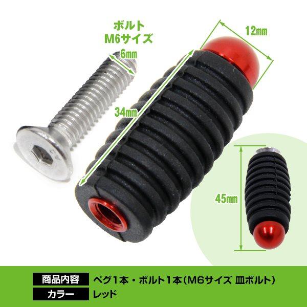 レッド ゴム付きペグ ブレーキ シフト共用 M6 シフトペグ ブレーキペグ ステップ補修用 バックステップ 修理用 ゴム付き オートバイ