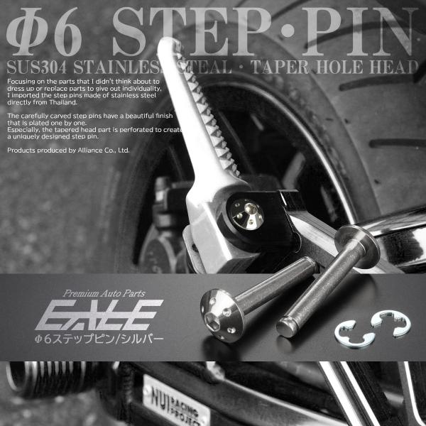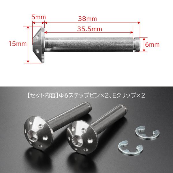 ステップピン リア用 クレビスピン Eクリップ 外径6mm テーパーホールヘッド ステンレス シルバー ホンダ車汎用 2本セット TH0470