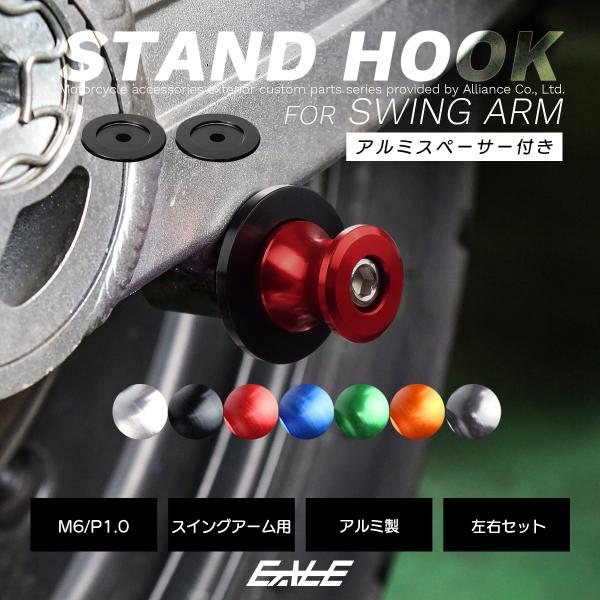 バイク スタンドフック スイングアーム用 M6 リア用 アルミ製 スペーサー付き 左右セット S-521