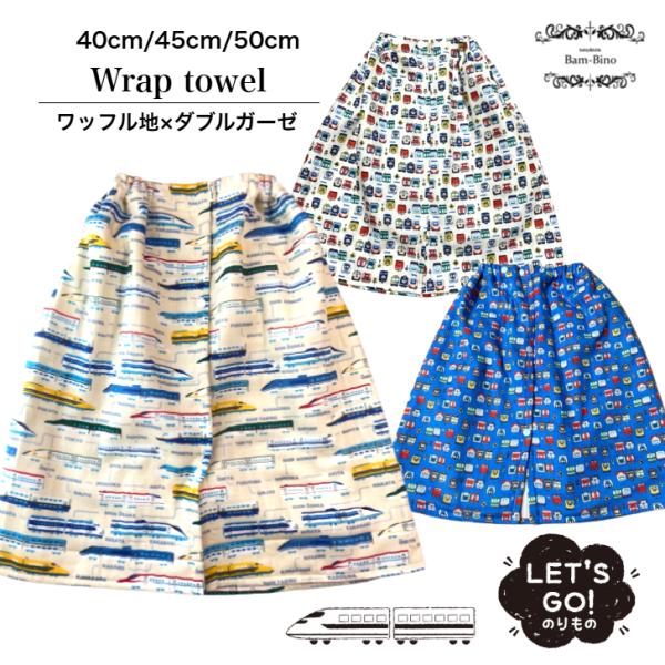 ラップタオル 子供用 40cm 45cm 50cm ワッフル地 ダブルガーゼ 新幹線 電車 男の子 プール 海 水泳 スイミング ベビー キッズ 幼稚園 保育園 習い事