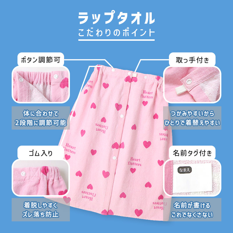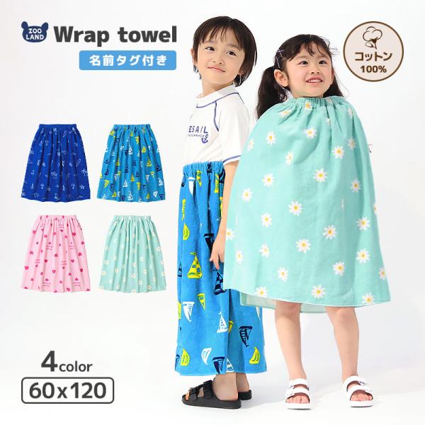 ラップタオル 60cm キッズ プールタオル 男の子 女の子 巻きタオル 子供用 綿100% コットン お名前タグ付 水着用品 バスタオル 120cm 着替え プールタオル