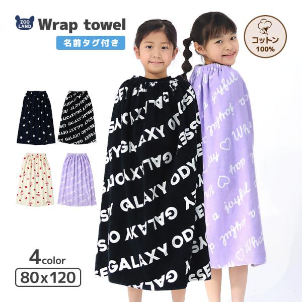 ラップタオル 80cm キッズ プールタオル 男の子 女の子 巻きタオル 子供用 綿100% コットン お名前タグ付 水着用品 バスタオル 120cm 着替え ロゴ 総柄