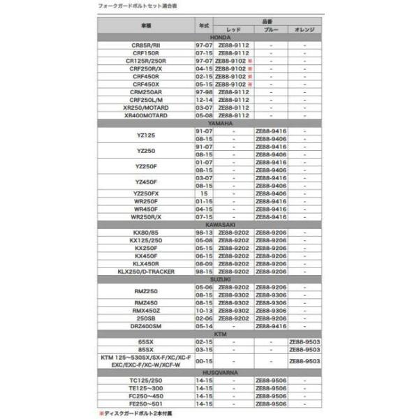 ZETA RACING ジータ レーシング フォークガードボルトセット YZ125 YZ250 YZ250F YZ450F WR250F WR400F WR250R WR250X DR-Z400SM YAMAHA ヤマハ SUZUKI スズキ