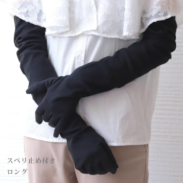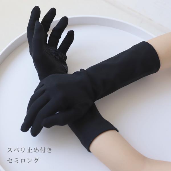 アームカバー 熱中症対策グッズ 暑さ対策 紫外線カット メッシュ スベリ止め付 セミロング 手袋 おたふく手袋 虫よけ 速乾 UVカット ブラック 母の日