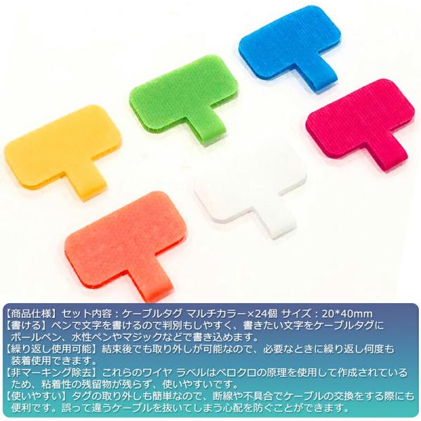 【6色×4枚計24枚入り】 ケーブルタグ ケーブルラベル マジックバンド ワイヤタグ ネームラベル 結束バンド 面ファスナー式 20mm×40mm