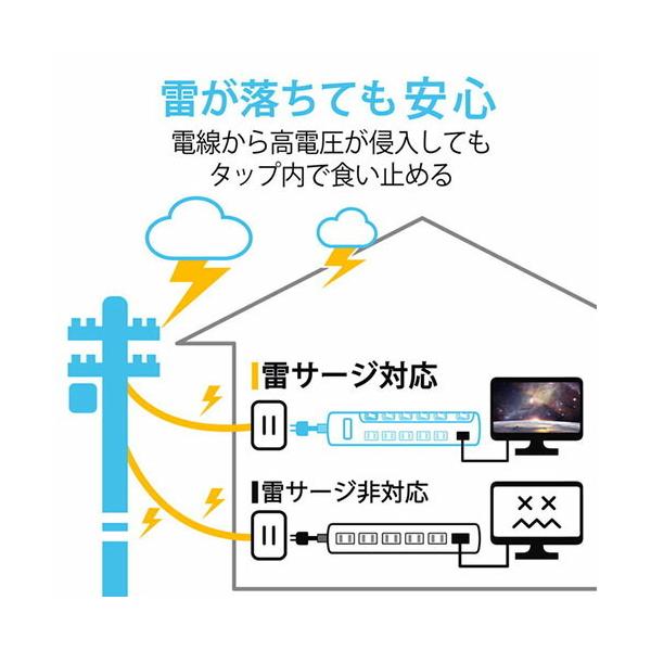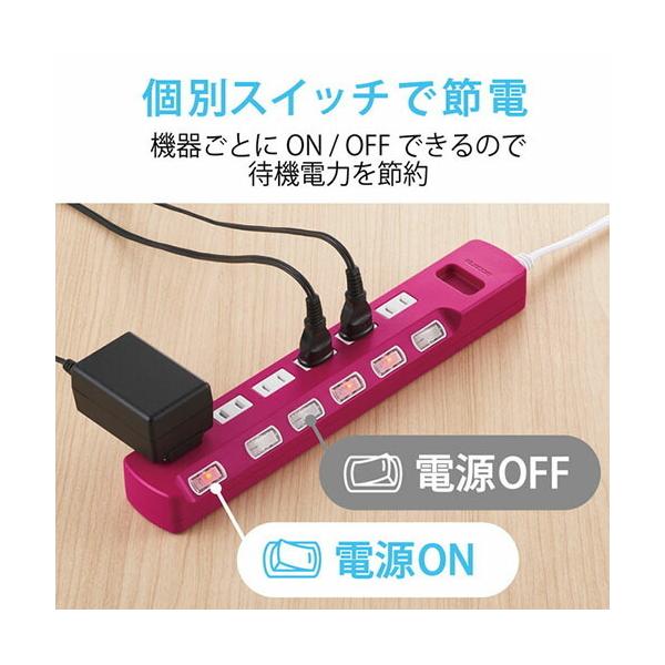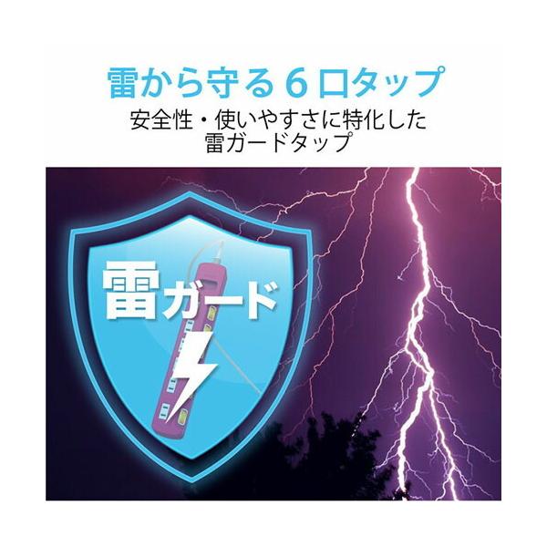 エレコム T-K6A-2630PN 電源タップ 雷ガード個別スイッチタップ 6個口 コードタップ コンセント 延長コード タップ OAタップ