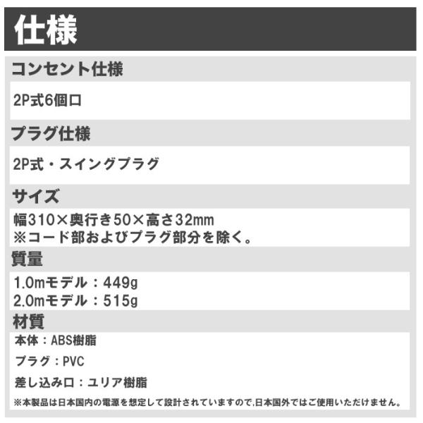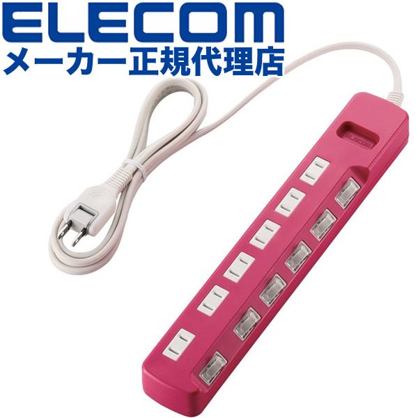 エレコム T-PN04-2620PN 電源タップ 2m コンセント 延長コード タップ ピンク・2P式 個別 スイッチ 付き 6個口