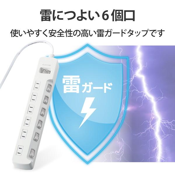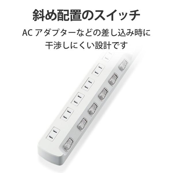 エレコム T-K8A-2650WH 電源タップ 5m コンセント 延長コード タップ コンセントタップ ほこり防止 一括&個別 スイッチ 付